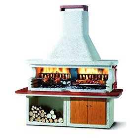 Большое барбекю Miami 2 с укрепленной двойной топкой в комплекте с 2 железными держателями дров и двойным металлическим колпаком. Верх из обожженного цемента или со сланцевым эффектом. Возможность готовить на 2 (дополнительных) грилях, 76 см.