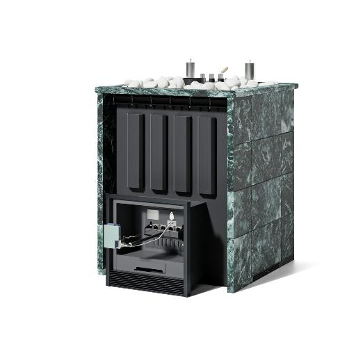 Банная печь ИзиСтим Домна 60 К в трехстороннем кожухе с газовой горелкой ГГУ-80 (змеевик)