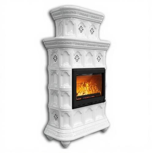 Готовый камин КимрПечь Истра двухъярусный пристенный с топкой Астов К7454 (белый)
