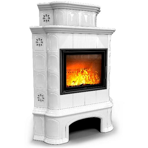 Готовый камин КимрПечь Прованс с дровником двухъярусный угловой с топкой Астов МЛ 700 (белый)