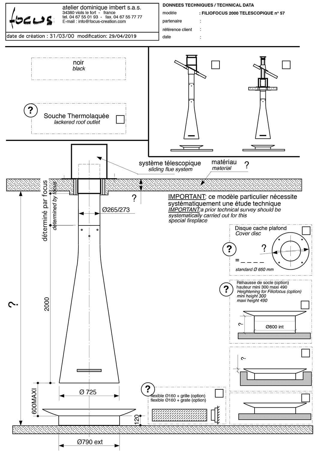 Инструкции, чертежи, документы - Готовый камин Focus Filiofocus 2000 центральный, телескопический