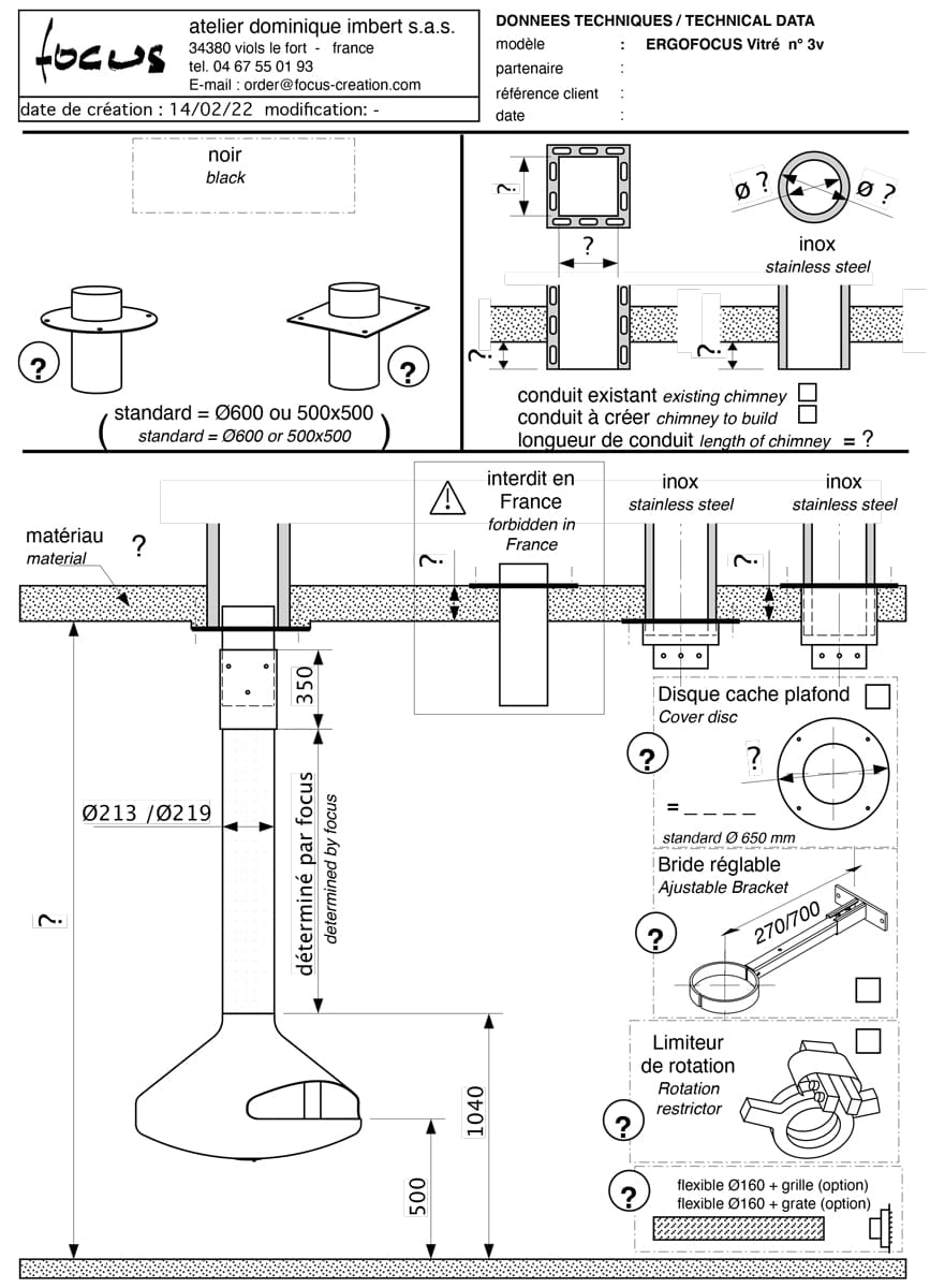 Подвесной камин Focus Ergofocus со стеклом (чаша камина)