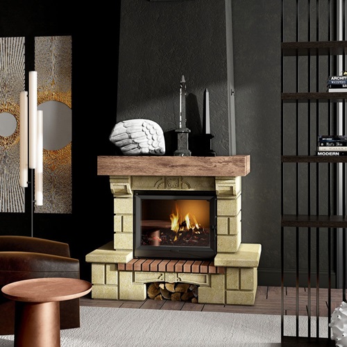 Каминная облицовка Supra Russia Sardane SR, желтая, с деревянной балкой