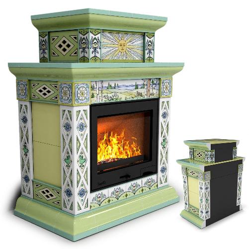 Облицовка камина КимрПечь Билибин пристенный-двухъярусный художественный для топок 600 (весна)