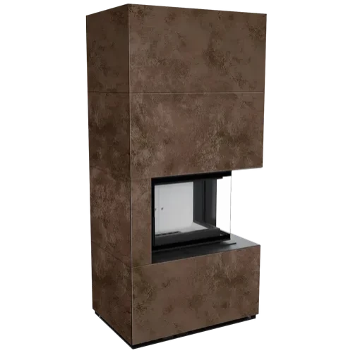 Каминокомплект Kratki Pro Floki в облицовке Oxide Moro, угловое стекло справа (светлая футеровка)
