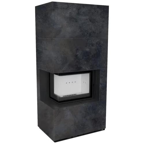 Каминокомплект Kratki Pro Floki в облицовке Oxide Nero, угловое стекло слева (светлая футеровка)