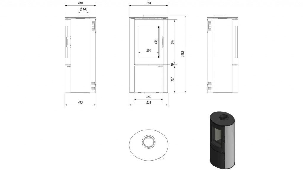 - Диаметр дымохода, мм 150
