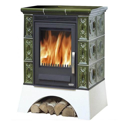 Печь-камин ABX Helvetia KP, с теплообменником, белый цоколь (зеленый)