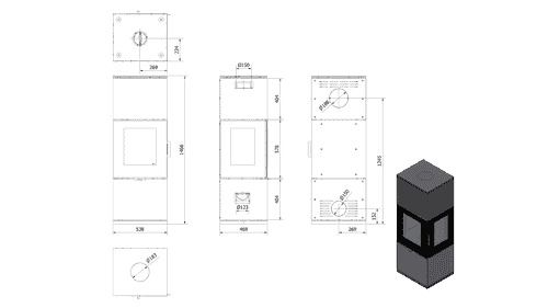 - Выход дымохода Сверху/Сзади