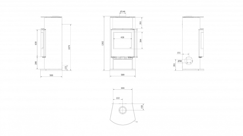 - Диаметр дымохода, мм 150