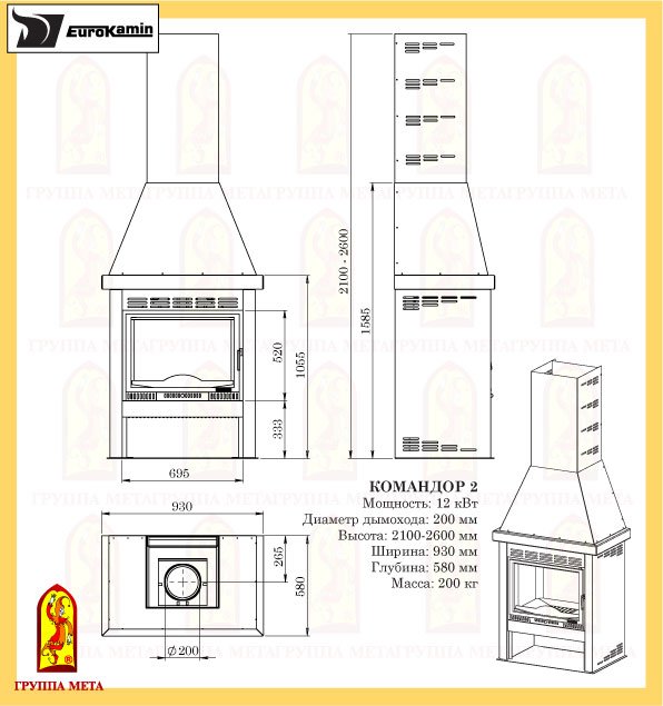 Инструкции, чертежи, документы - Печь-камин Мета Командор 2