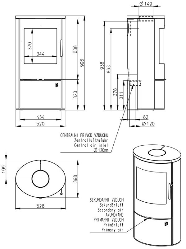 По умолчанию печь имеет верхнее подключение дымохода. При заднем подключении может понадобиться верхняя заглушка к печи. Приобретается отдельно.