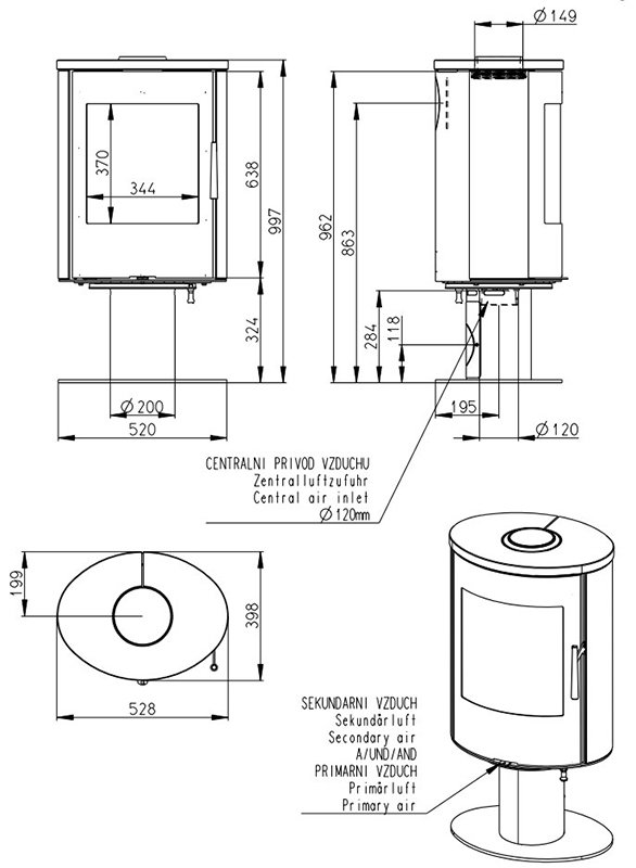 - Выход дымохода Сверху/Сзади