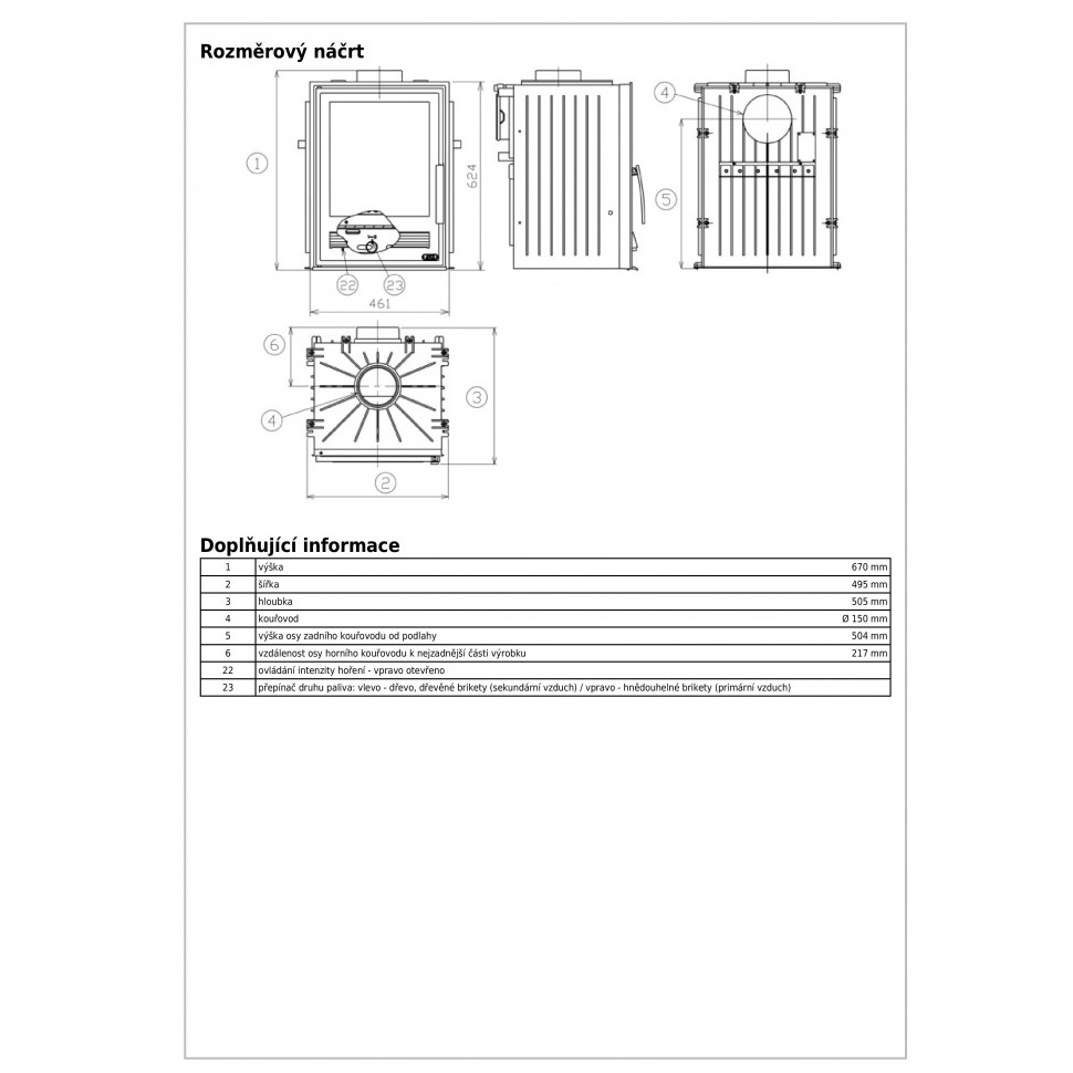 - Диаметр дымохода, мм 150