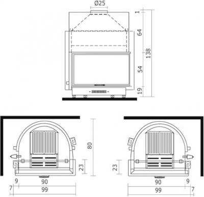 Инструкции, чертежи, документы - Каминная топка EdilKamin Acquatondo/29 dx, sx