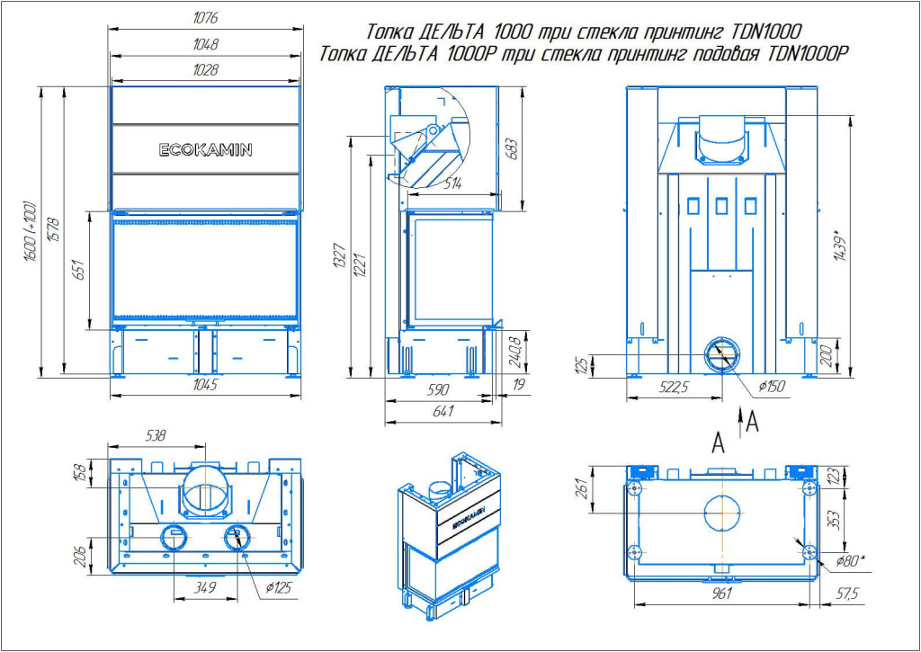 Инструкции, чертежи, документы - Каминная топка ЭкоКамин Дельта 1000 три стекла принтинг