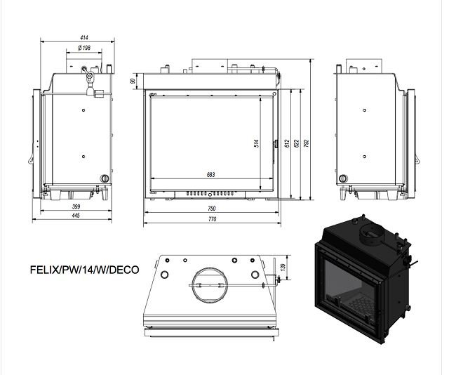 Инструкции, чертежи, документы - Каминная топка Kratki Felix/PW/14/W/Deco