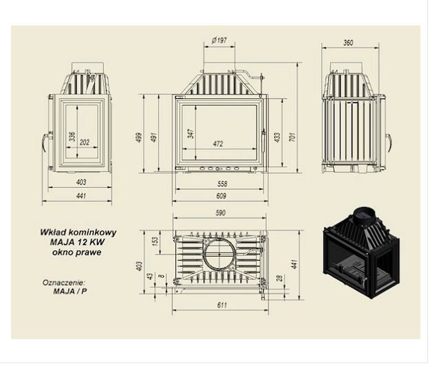 Инструкции, чертежи, документы - Каминная топка Kratki Maja/P (стекло справа)