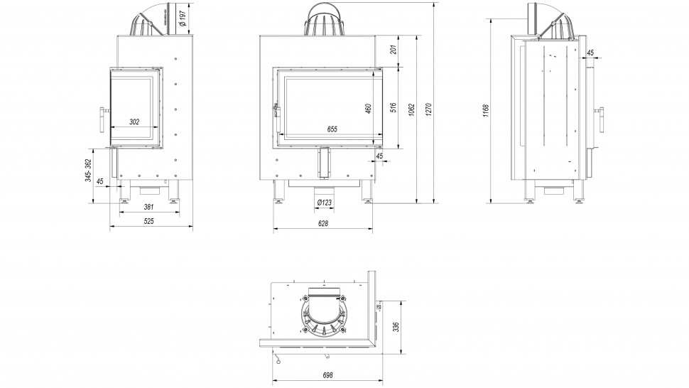 Инструкции, чертежи, документы - Каминная топка Kratki Pro Lucy/12/P/BS, стекло справа