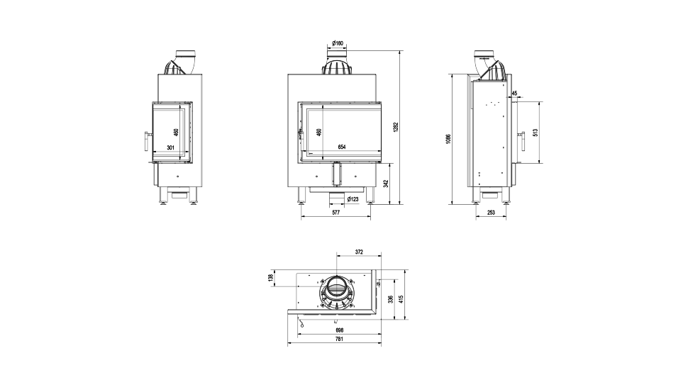 - Диаметр дымохода, мм 160