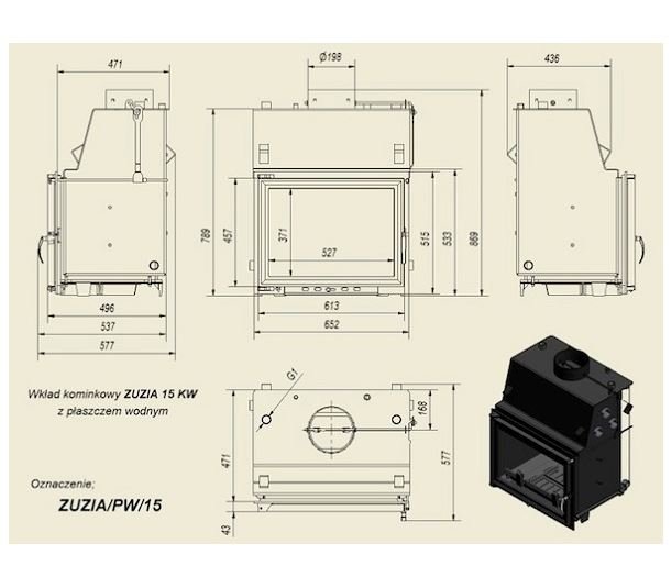 Инструкции, чертежи, документы - Каминная топка Kratki Zuzia/PW/15/W
